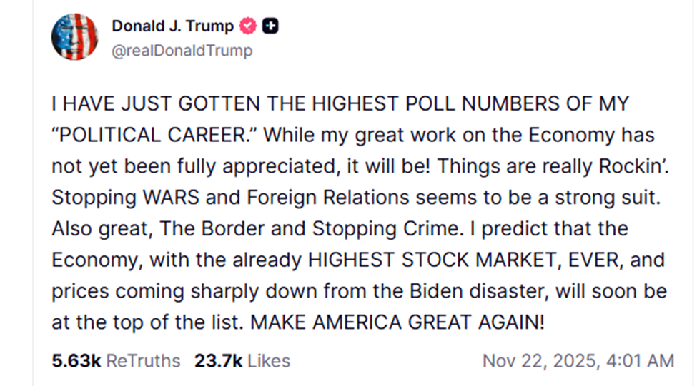 True to form, the President’s response to the midterm shellacking was to double down. In recent weeks he has gone on the offensive to insist the economy is thriving, inflation is in check, and prices are way down. In fact, he’s saying that cost-of-living concerns are little more than a Democratic talking point. Their new narratives on “affordability” are simply a “con job.” All the polls citing negative numbers regarding Trump’s performance are fake. Multiple times a day he makes statements and cites statistics that simply aren’t true. He still apparently believes that a forceful information campaign can convince us that that our struggles are imaginary. We simply don’t yet fully appreciate all his great work on the economy.