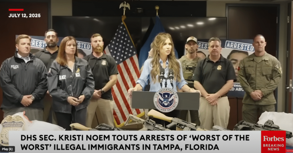 Homeland Security Secretary, Kristi Noem, at a press conference in Tampa, Florida on July 12, 2025
