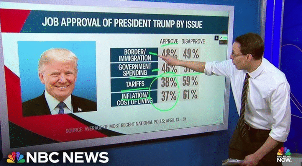 In summary, it’s paramount to understand that Trump’s handling of economic issues–especially inflation and prices–is the key driver in Trump’s declining job approval ratings. Large percentages of virtually every demographic group are upset that prices have not come down, as the President promised. Other data show that large majorities of Americans are struggling with their personal finances and trying to make ends meet. Americans are concerned about the accessibility and costs of health care, especially after huge cuts to Medicaid, and Medicare enacted in Trump’s One Big Beautiful Bill. They are concerned that tariffs are going to further increase prices and lead to inflation. These pocketbook issues are at the forefront. And issues such as immigration, guns, abortion, crime, climate change, education, and national security have less often been a factor in driving Trump’s declining job approval.